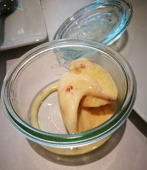 - Poi siamo arrivati al dolce e quello che mi ha colpito di più è stato il gelato alla vaniglia con un tè nero. Il contrasto caldo e freddo mi dava un po’ da fare ma il caldo del tè esaltava il gusto del gelato.