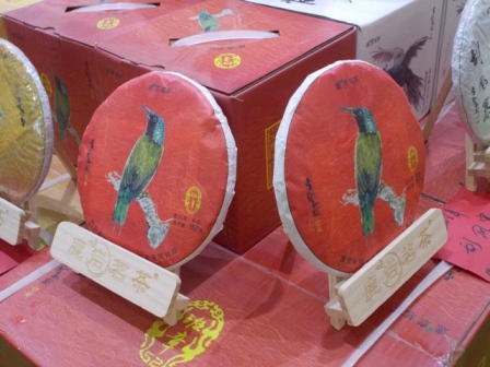 Tra i vari stand ho visto giare con bucce di mandarini che avevano anche più di 10 anni e naturalmente aumentando di età aumentavano di prezzo. Una cosa che mi ha colpito, poi, son stati i “panetti” di tè, alcuni in cialde altri in mattoni, soprattutto per il modo in cui erano conservati (alcuni in dei sacchi di pelle altri in dei cilindri) e per l’età che questi avevano: io non pensavo che il tè potesse essere conservato così a lungo (Ps: gentilmente Barbara mi ha chiarito le idee su questi tè ^^) quindi mi chiedevo come potessero essere buoni dopo così tanto tempo. In verità questo se lo chiedeva anche il mio compagno che è cinese, non molto amante della bevanda ma soprattutto abituato ad atri tipi di tè (questo fa anche capire quanto la Cina sia un paese grande e pieno di persone, tradizioni e usanze diverse, spesso lontanissime tra loro).