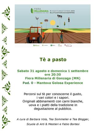 Volete scoprire il tè abbinato al cibo?Allora venite questo sabato 31 agosto e domenica 1 settembre presso la Fiera Millenaria di Gonzaga (Mantova).