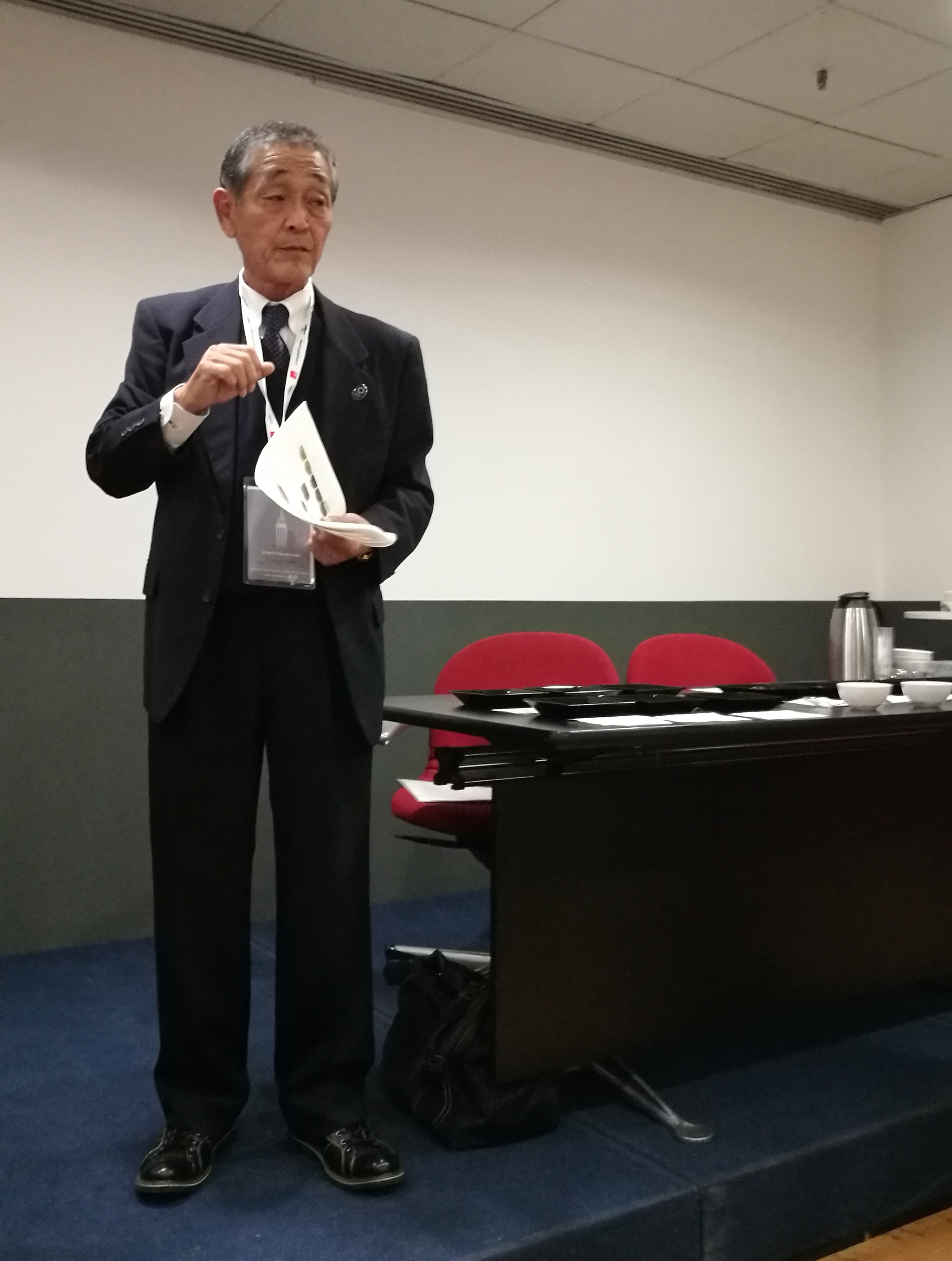 Dal Giappone c’erano Mitsutoshi Sugimoto, laureato in Agrochimica, ed è stato direttore della NPO Nihoncha Instructor Association che ha lo scopo di promuovere la cultura del tè in Giappone e Kiyohisa Kitagawa è stato direttore generale della Tea Industry Division della Prefettura di Shizuoka. Inoltre c’era la Maestra Junko Hosomi che ha parlato dello Zen e l’arte giapponese del tè.