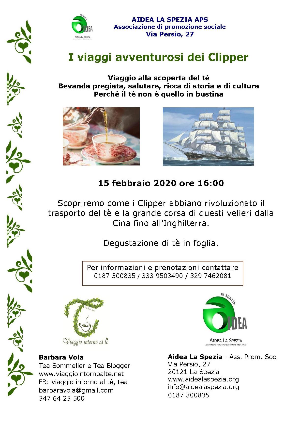 - Sabato 15 febbraio dalle 16 alle 18 “I viaggi dei clipper” presso l’Associazione AIDEA di La Spezia. Contattare 333 9503490 / 329 7462081
