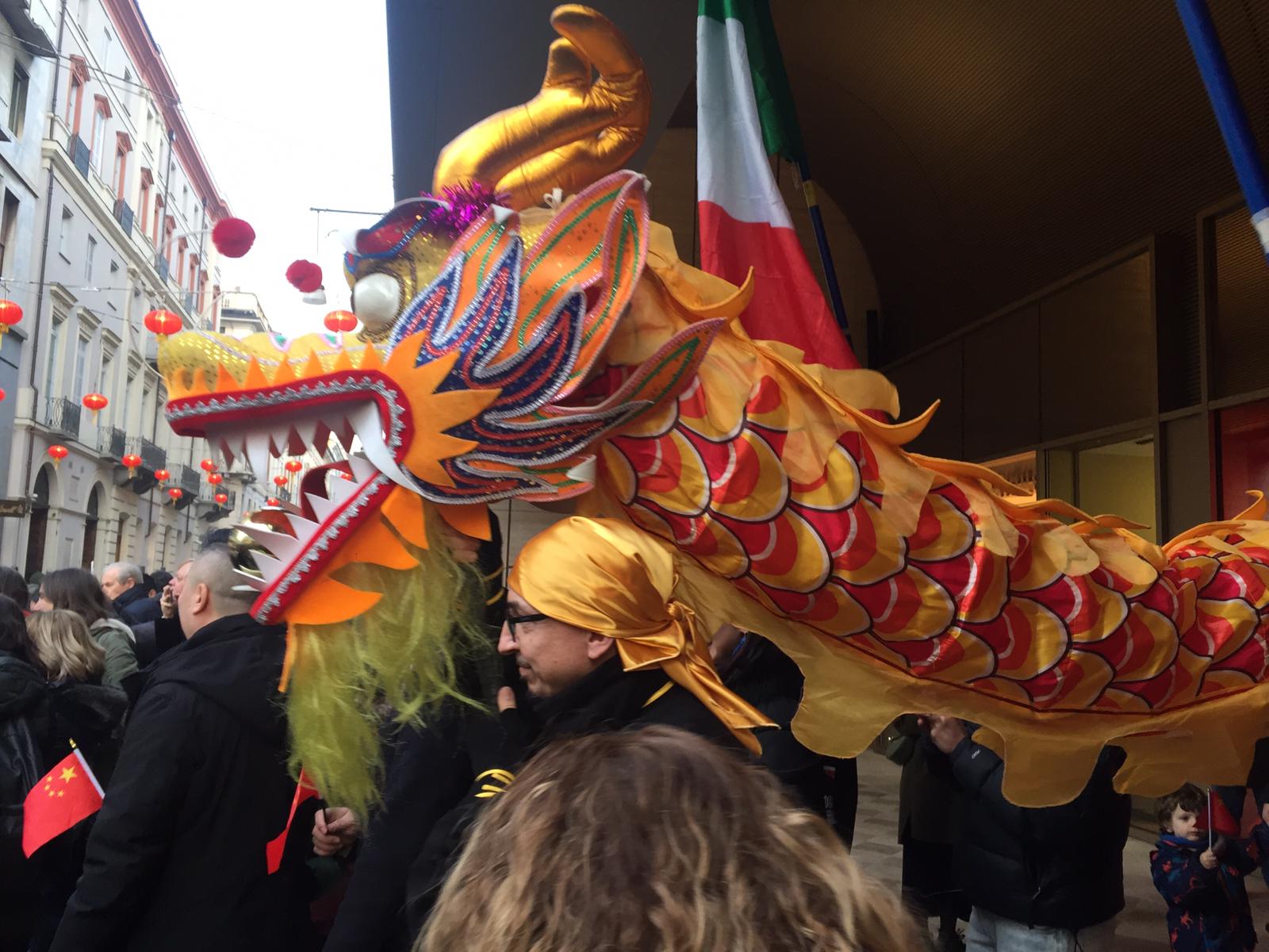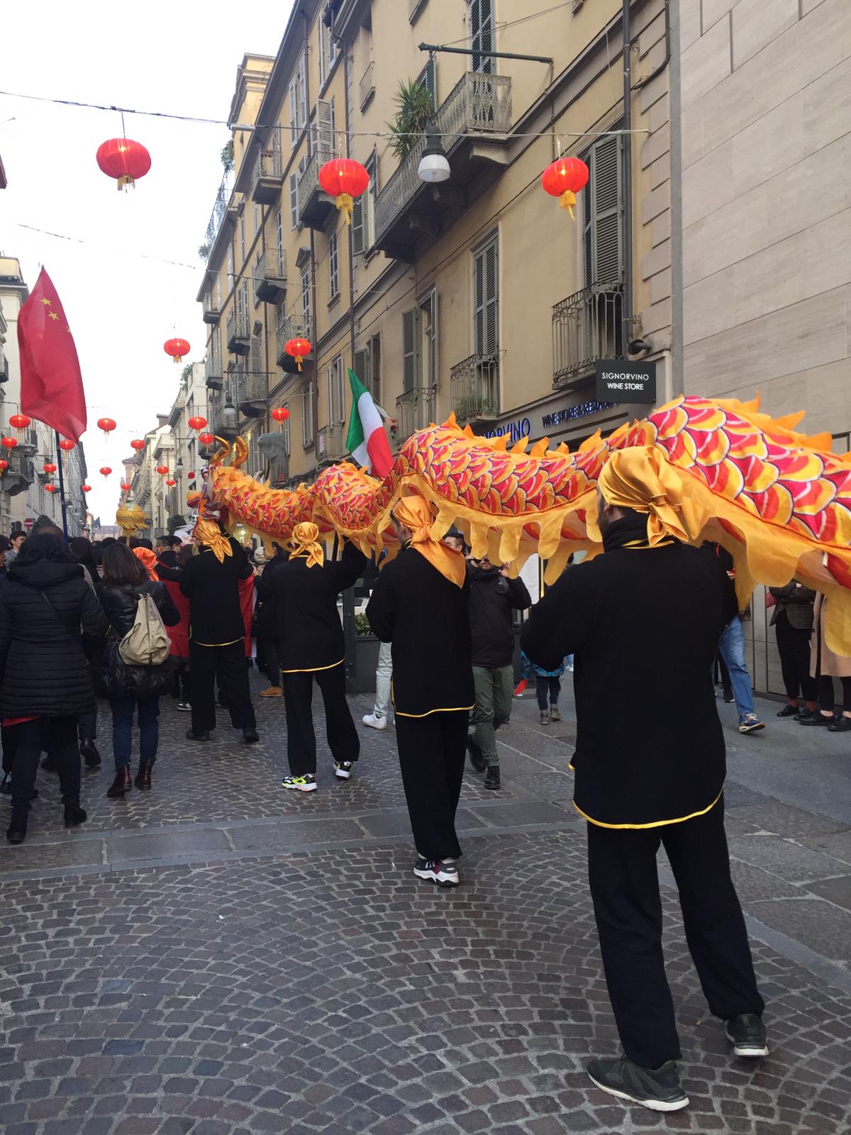 La sfilata o danza del drago è tipica del Capodanno Cinese. Viene realizzata una grande figura di carta pesta e stoffa che viene mossa all’interno da un gruppo di persone che si muovono in movimenti sinuosi e coordinati che mimano i movimenti del drago e simboleggia longevità, portatrice di pioggia e protegge contro gli spiriti maligni e i demoni.