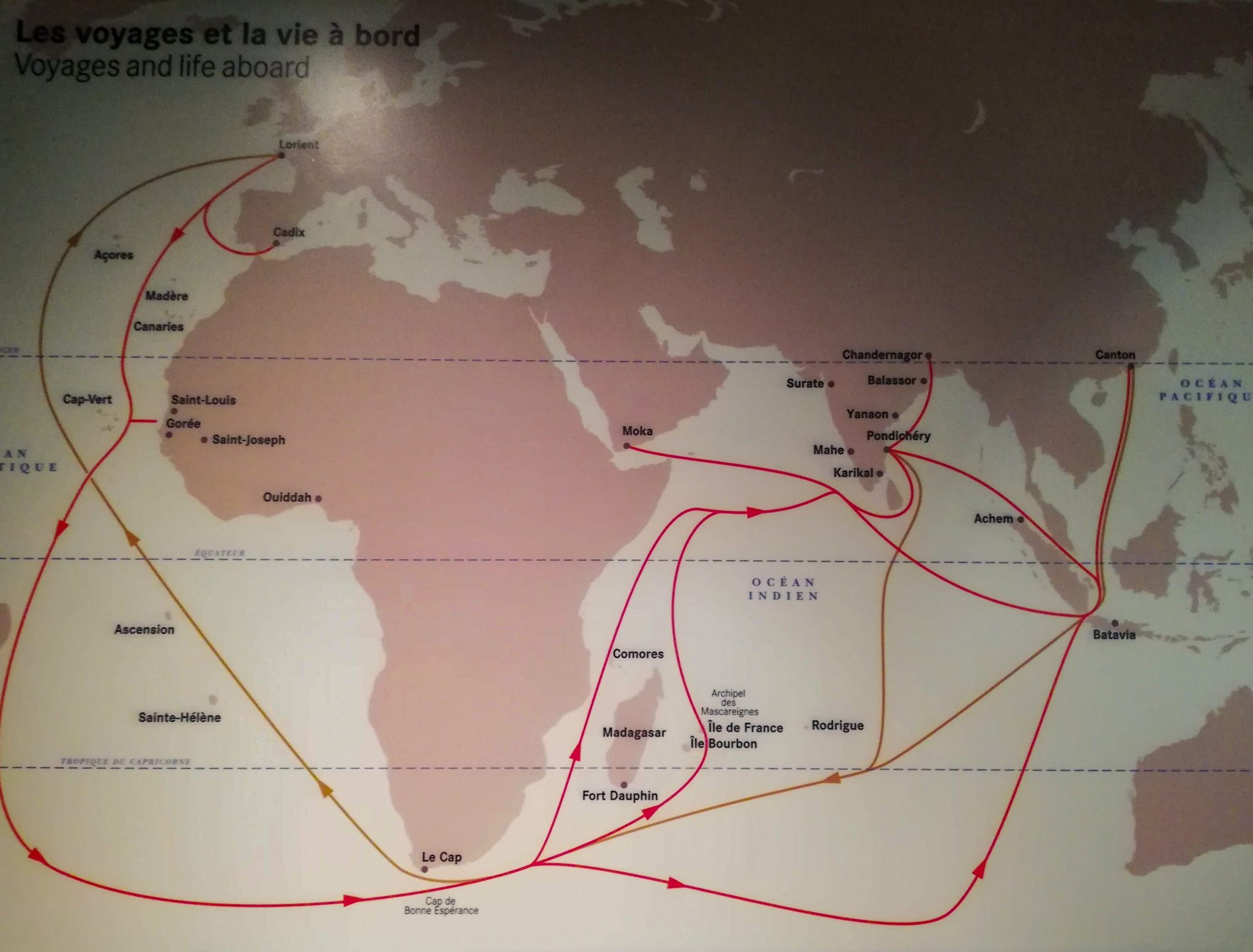 Prima di tutto, la posizione di Réunion mi ha immediatamente richiamato alla mente le rotte dei velieri delle Compagnie inglesi delle Indie orientali di fine ‘700 e cercando una cartina da allegare a questo post, mi sono imbattuta nel blog di Cristiana, che ringrazio per avermi permesso di citarla in quanto autrice di questo interessante articolo corredato da una foto molto significativa (https://www.cuorilievi.org/la-compagnia-delle-indie-e-il-museo-di-port-louis/)