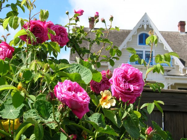 Avete indovinato! E’ la Cabot Cove di Jessica Fletcher: le scene in esterno sono girate qui, non nel Maine! Lo so…..Sono rimasta sorpresa quanto voi! Tornando alle rose, questa location stupenda ne è piena. Sono state piantate a inizio ‘900 da una signora appartenente ad una fortunata famiglia che nell’Ovest trovò davvero la fortuna: Daisy MacCallum era una grande amante dei fiori e nelle sue proprietà, in gran parte perdute, piantò centinaia di rose che ancora oggi vengono individuate e identificate grazie ai suoi diari e ai cataloghi dei vivai da cui acquistava le piante e che sono state ritrovate nella biblioteca di una delle dimore ancora ben conservate che oggi è un Bed&Breakfast.
