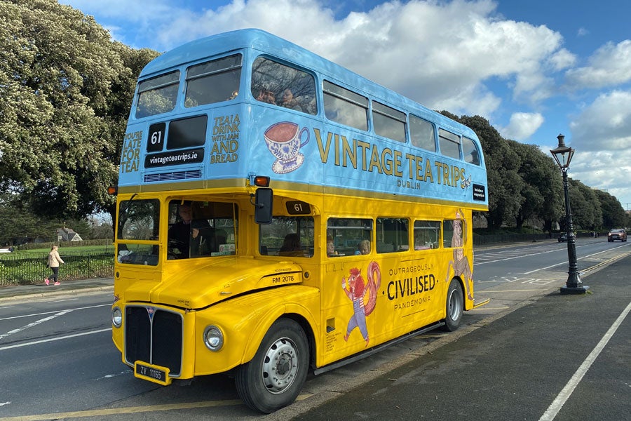 Il giro, della durata di circa 70-80 minuti, è organizzato da Vintage Tea Trips e parte da Temple Bar, attraversa il centro di Dublino, passa per la Cattedrale di San Patrizio, la Christ Church, il Trinity College, il Phoenix Park. Il prezzo è di € 50,00.