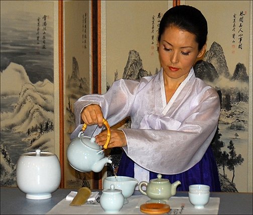Anche in Corea esiste una cerimonia buddista del tè. Vengono utilizzati oggetti semplici, si partecipa in tre e si dà importanza allo stato d’animo individuale delle persone.