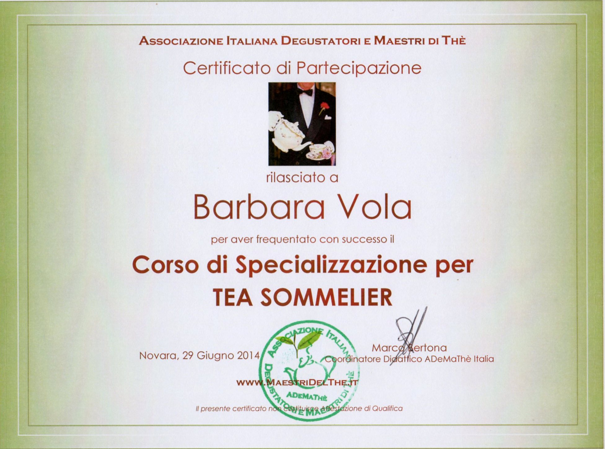 Ho frequentato alcuni moduli con Gabriella Lombardi della Protea Academy che rilascia l’attestato della Tea and Herbal Association of Canada.